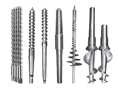 公司生产的各种螺杆、机筒,严格选用优质氮化钢(38CrMoAlA),经调质、成型、定性、氮化(或喷焊双合金)、精磨 、抛光等工艺精制而成.并运用欧美最新的工艺技术和加工检测设备精心制作,严把质量关,确保产品的精度和质量,并具有较长的使用寿命和良好的耐磨耐腐性能。喂入的胶料要求必须经过热炼,且供料均匀、稳定、等速,料温保持在50~70℃。其螺杆短,螺纹沟深,可连续挤出、操作简单、生产效率高、挤出成品形状稳定。